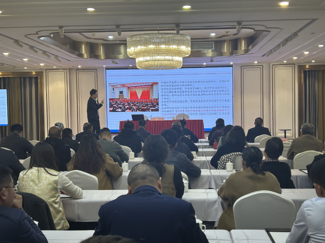 为深入学习贯彻党的二十届四中全会精神,精准把握“十五五”规划战略导向,11月21日,省工商联所属商会党委在合肥举办专题宣讲报告会。省工商联直属商会领导班子成员、全体党员及会员代表共计百余人参加学习。