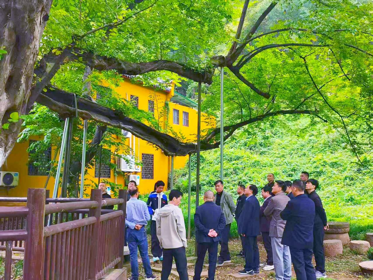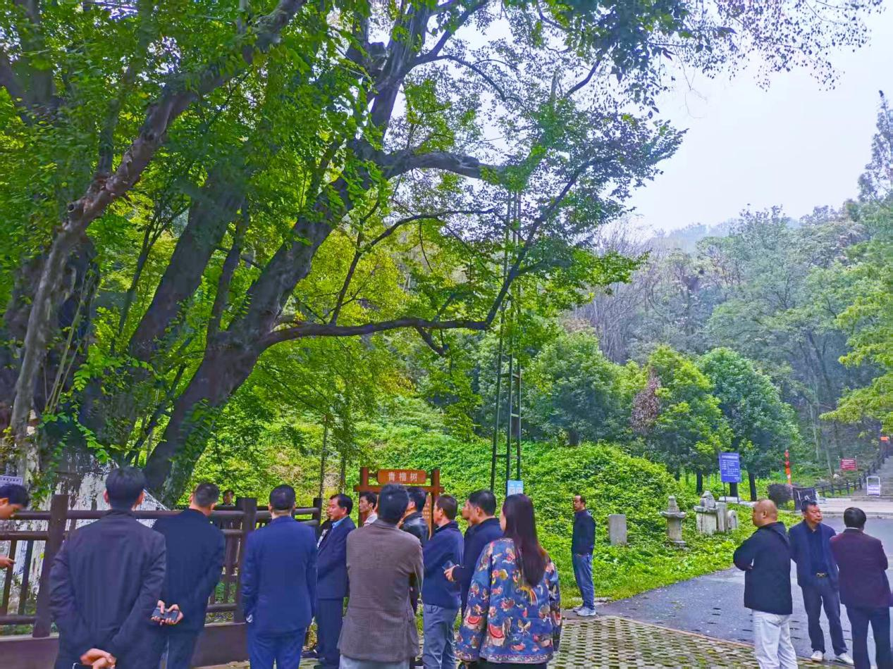 团建活动的第二站,我们来到了蜀山镇境内的天井山国家森林公园,这里自然景观奇特,人文史迹悠久,与江北地质奇观泊山洞、闻名遐迩的竹丝湖遥相呼应。位于公园双泉寺东边的青檀古树,树龄达1700年,树粗8人合围,高7丈,冠幅1亩有余,为安徽省一级保护古树,被誉为“千年青檀王”。同时,天井山国家森林公园所处的周家大山,也是最早的革命根据地之一,新四军七师曾在此与日、伪、蒋开展长期的斗争,三尖山二十三烈士纪念碑和烈士墓群是无为市爱国主义教育基地,整个陵园依山而建,与森林和谐相映,气势巍峨而庄严。1944年8月23日,国民党第八纵队528团集结1600余人的兵力,兵分两路向皖江抗日根据地中心区发起进攻。为掩护新四军第七师主力部队实行战略转移,新四军第七师56团2营4连1排的23位勇士,在支部书记张柏和排长张开立的带领下,坚守三尖山阵地,与顽军进行了殊死战斗,最后全部壮烈牺牲。新四军代军长陈毅曾发布嘉奖令,高度评价了23名烈士的英雄壮举。