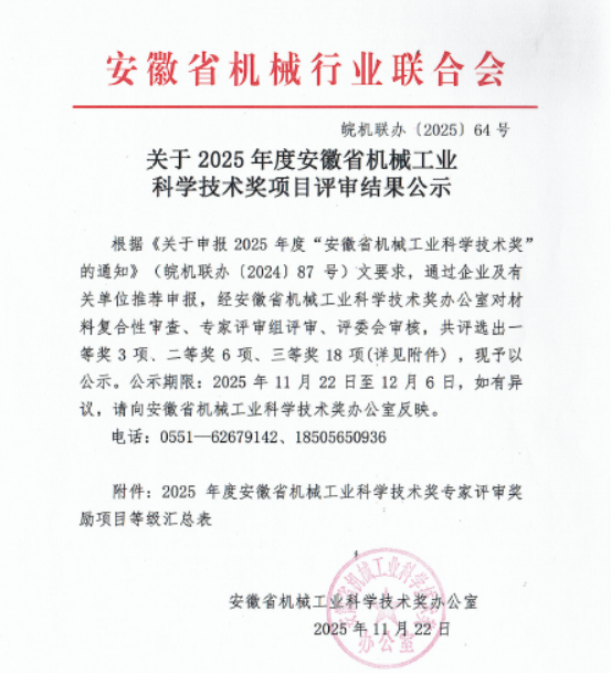 03获2025 年度安徽省机械工业科学技术奖二等奖