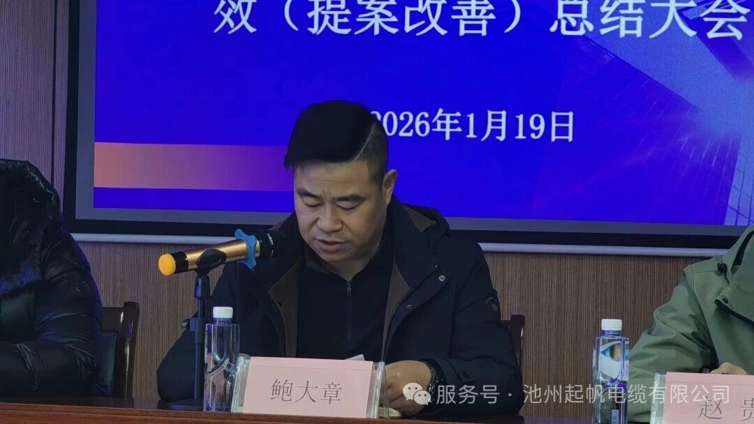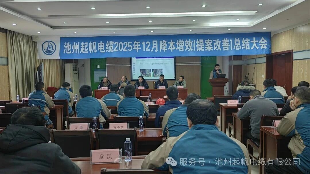 2026年1月19日,池州起帆电缆有限公司组织召开2025年12月降本增效(提案改善)总结会议,各部门负责人及获奖项目参与人员参会。会议伊始,总经理鲍大章提出围绕12月情况深入研讨,当月共征集提案53项。会上分享典型案例,公布筛选结果并表彰先进,还制定了后续计划,明确责任与节点,推动工作持续开展。