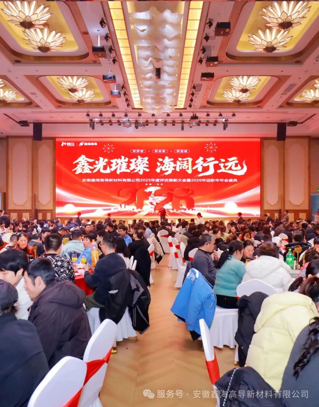 2026年2月5日,安徽鑫海高导新材料有限公司年会在无为市·金世纪国际酒店盛大启幕,现场暖意拉满、喜乐相伴!现场500多名鑫海家人欢聚一堂,卸下一整年的忙碌与疲惫,共赴《鑫光璀璨 海阔行远》2025年度评优表彰大会暨2026年迎新年年会,一起回望过往耕耘、致敬身边榜样、解锁全场欢乐,向着新一年的美好征程全力出发~