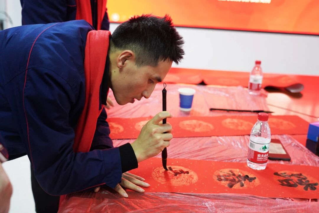 活动现场洋溢着欢乐祥和的气氛。招商银行特邀的书法名家与公司内部书法爱好者一同挥毫泼墨,笔走龙蛇。一行行俊逸的书法,一句句真诚的祝福,在红纸上翩然呈现。“神骏腾飞兴伟业,马到成功谱新篇”“银企合作开新局,龙马精神贺丰年”……一副副寓意吉祥、墨香四溢的春联和一个个创意十足的“福”字,不仅饱含着对新年的美好祈愿,更彰显了中华书法艺术的独特魅力,也寄托了对公司蓬勃发展、员工幸福安康的深深祝福。