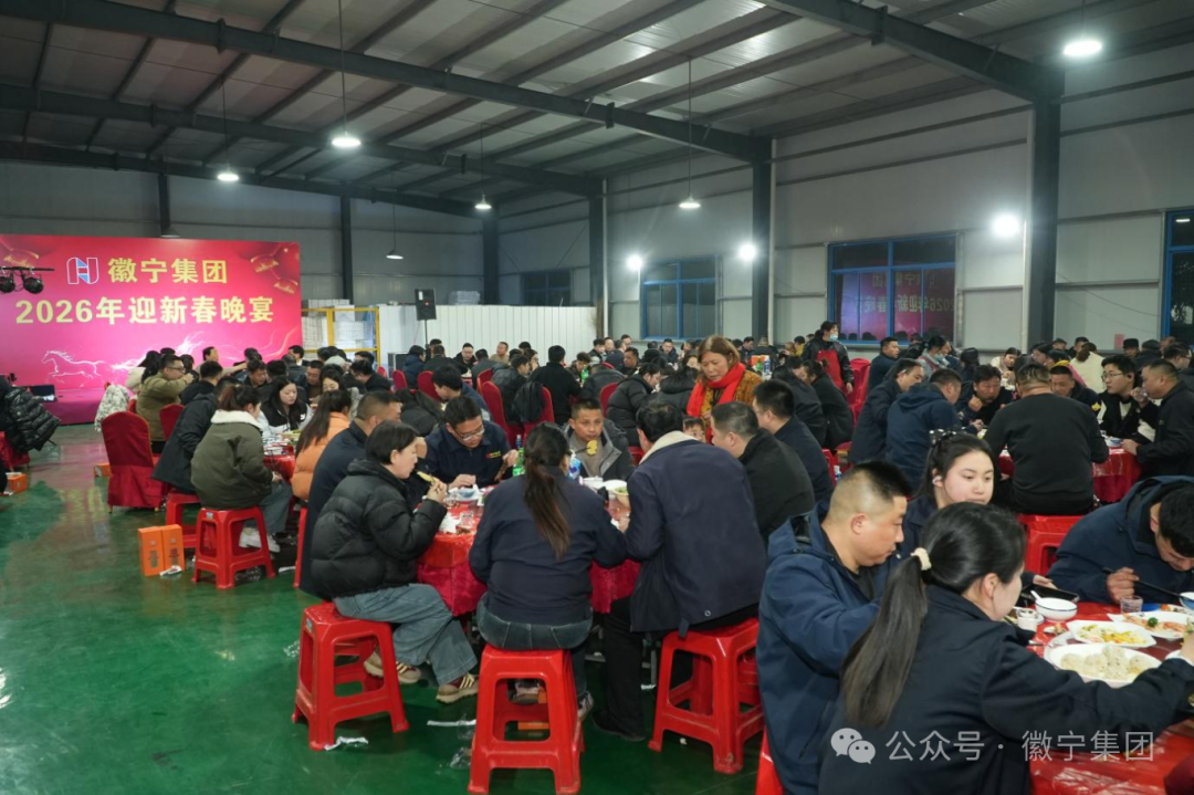 欢歌辞旧岁,雅宴聚同心。文艺晚会落下帷幕后,全体参会人员移步至晚宴现场,一场温馨的新春晚宴如期开启。宴会厅内华灯璀璨、张灯结彩,大红的装饰映衬着一张张笑脸,浓郁的年味萦绕全场。徽宁人围坐畅谈、把盏言欢,共忆2025年并肩奋斗的点滴过往,同抒2026年携手前行的美好憧憬。推杯换盏间,是情感的交融,是心与心的贴近,更是团队力量的凝聚,这场晚宴让全体徽宁人的联系愈发紧密,让同心筑梦的信念愈发坚定。·