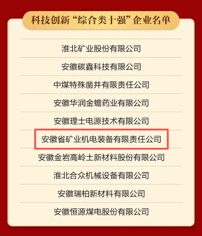 据悉,淮北市科技创新企业“综合类十强”评选由市科学技术局牵头组织,围绕知识产权储备、研发平台建设、科技成果转化等多项关键指标,遴选出全市科技创新工作成效最为显著的标杆企业。安徽矿机的再度上榜,既是政府与社会对其坚持创新驱动发展战略的高度认可,也印证了其深耕煤矿机电领域、持续引领行业转型升级的硬核实力。