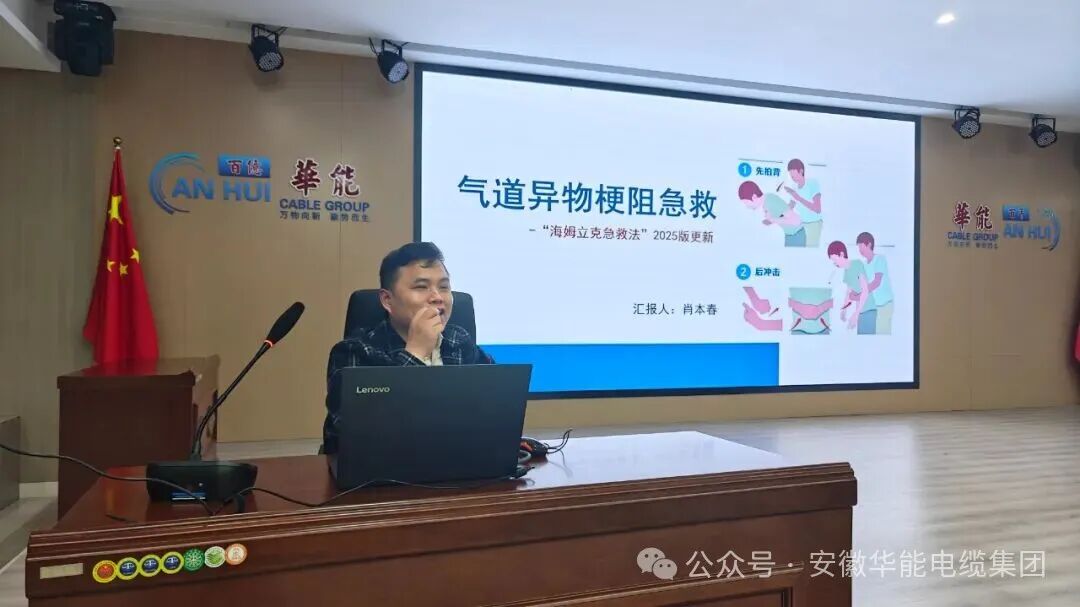 4月13日下午,为进一步提升全体员工应急救护能力,筑牢安全防护防线,安徽华能电缆集团在三楼大会议室开展应急救护知识专项培训。本次培训特邀无为市疾控中心刘杰股长、高沟镇中心卫生院肖本春医生授课,全体员工积极参与,系统学习实用急救技能。
