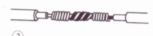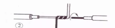 接着把这两股芯线按顺时针方向紧缠2圈后,再折回90° 并平卧在折起前的轴线位置上。