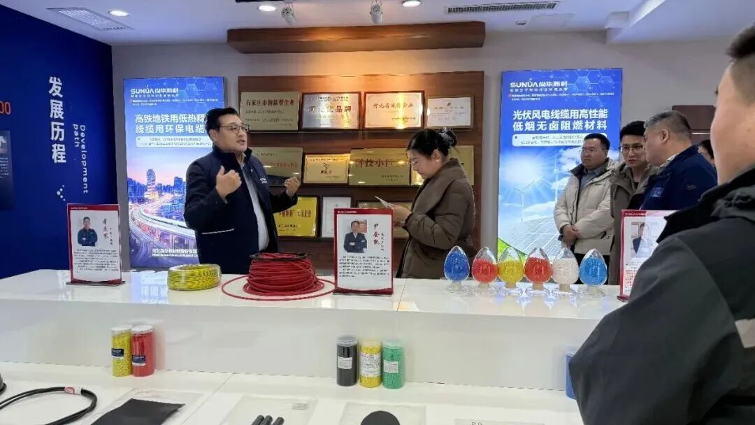 参观过程中,嘉宾们通过实物样品观摩与应用场景展示,深入了解尚华新材“用心做好线缆聚烯烃新材料”的企业文化愿景,以及聚烯烃新材料核心技术体系与丰富产品矩阵。针对公司聚焦的B1级低烟无卤阻燃、环保无卤阻燃聚烯烃电缆料等核心产品,嘉宾们详细询问产品性能优势,对公司精准服务新能源光伏、轨道交通、高压电缆、通信光缆等关键领域的产业布局与市场价值给予高度认可。