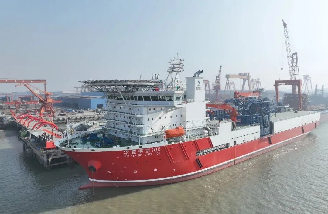 福建省宁德市东侨开发区1月17日透露,德京集团有限公司旗下核心海工装备——“华夏德京108”多功能海缆施工船1月16日在江苏省泰兴市正式交付。该船总载缆量18000吨,并以15000吨单缆盘载缆量刷新全球同类船舶纪录。