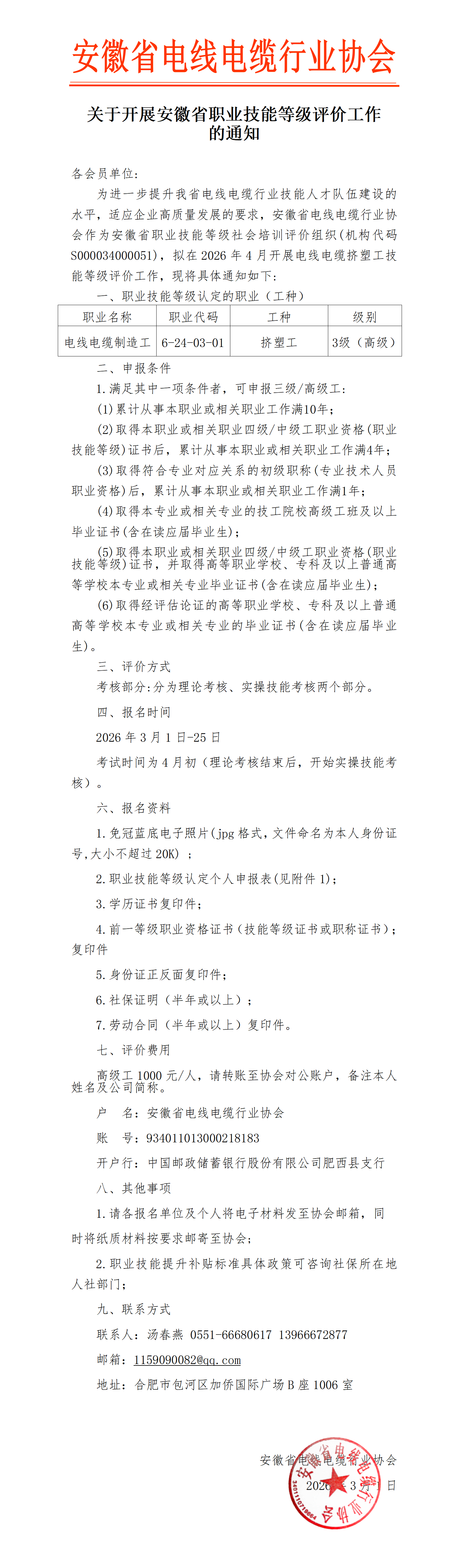 【通知】关于开展安徽省职业技能等级评价工作的通知