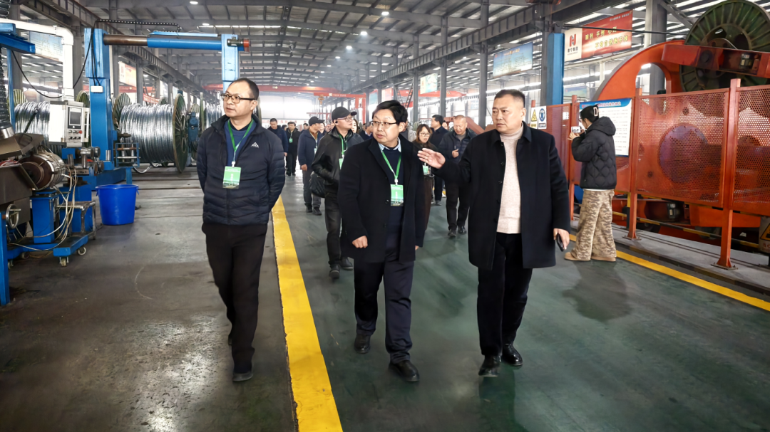 春和景明,聚力前行。2026年3月5日14时,苏州市光电产业商会牵头组织长三角电子线缆产业联盟及多家骨干企业代表,赴天长线缆产业基地开展参访交流活动,首站走进安徽徽宁电器仪表集团有限公司(以下简称“徽宁集团”),开展实地考察与座谈研讨。天长市仪表线缆行业协会组织相关负责人全程接待,党建指导员刘标、徽宁集团董事长王蕴华(协会监事长)、晶锋集团股份有限公司董事长许义彬(协会副会长兼秘书长)等协会代表陪同,徽宁集团常务副总经理等企业领导热情接待,双方围绕线缆产业高质量发展、技术创新、产业链协同等核心议题深入交流,共寻合作契机,共绘发展蓝图。