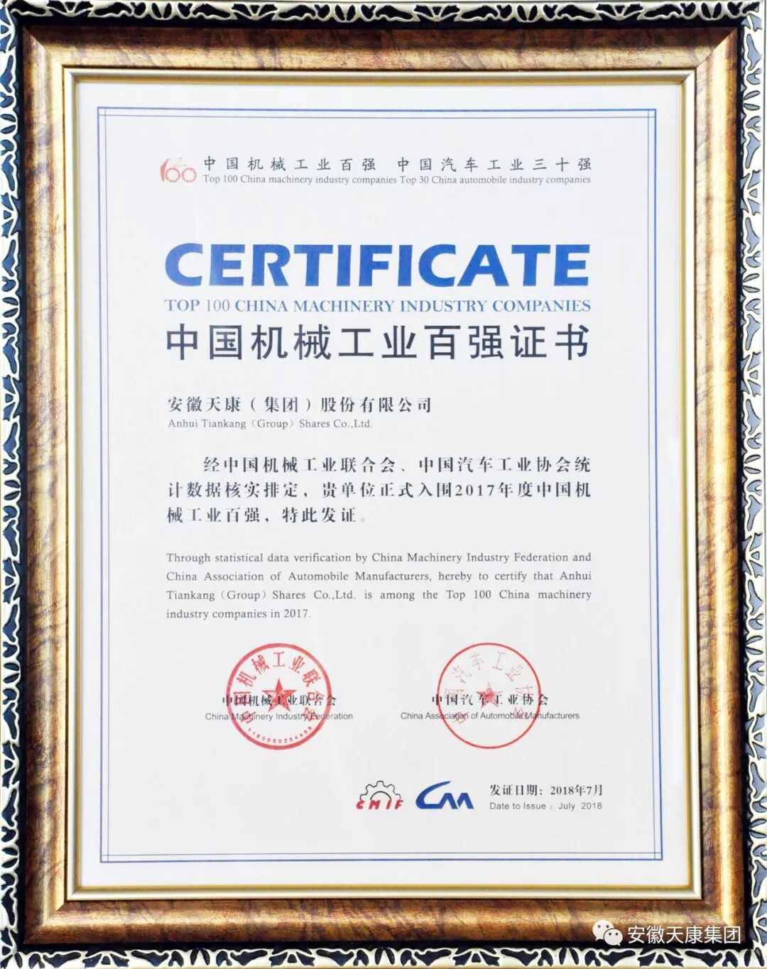 7月13日,第十四届“中国机械工业百强”信息发布会在山东临沂召开。会上,中国机械工业联合会发布了2017年中国机械工业百强企业名单,安徽天康(集团)股份有限公司强势登榜。自2014年以来,集团已连续四年榜上有名,这不仅是集团综合实力持续提升的体现,更是一次中国机械工业的集中展示。