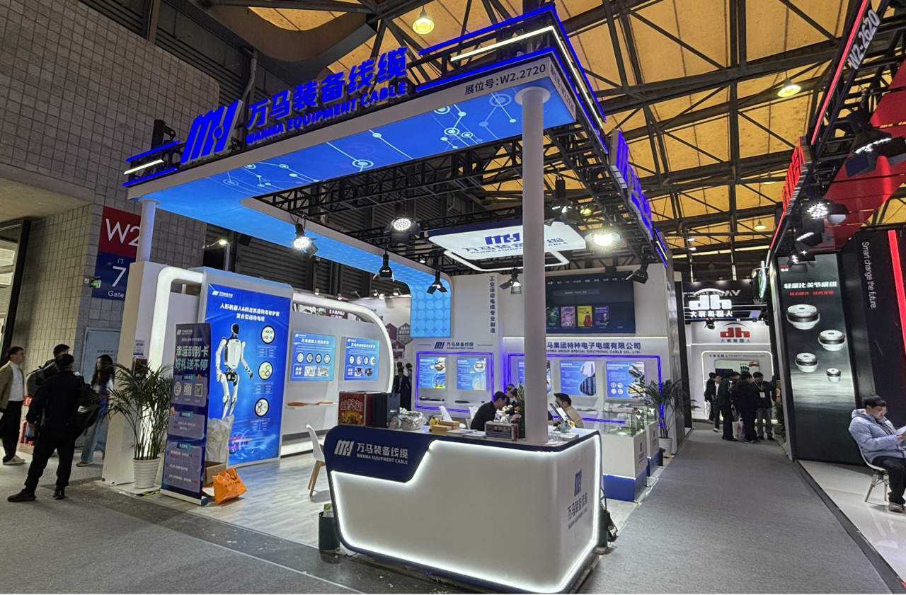 展会现场,万马装备线缆精心打造专属展台,以“全品类覆盖”为核心,打破传统展示模式,按产品应用场景整合展示区域,通过实物陈列、技术解析、场景模拟等多种形式,让现场观众直观感受产品性能与应用价值。展台集中呈现了工业运动线缆、具身智能机器人专用线缆、特种柔性线缆等几大核心系列产品,覆盖机器人、新能源汽车、光伏储能、工业自动化等多个重点应用领域,全方位展现万马装备线缆的全产业链布局与产品实力。