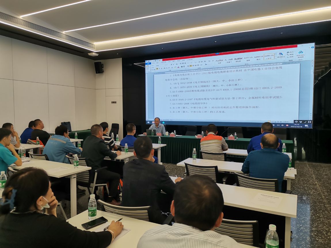 10月18日,2023年安徽省电线电缆制造工(拉制工)职业技能竞赛培训班及预赛在楚江导体科技园运营中心会议室举行。协会秘书长胡良健,安徽楚江高新电材有限公司生产技术总监梁则文,安徽华能电缆集团有限公司总工程师付世财,安徽凌宇电缆科技有限公司总工程师李万松出席活动。百余名参赛选手参加活动。