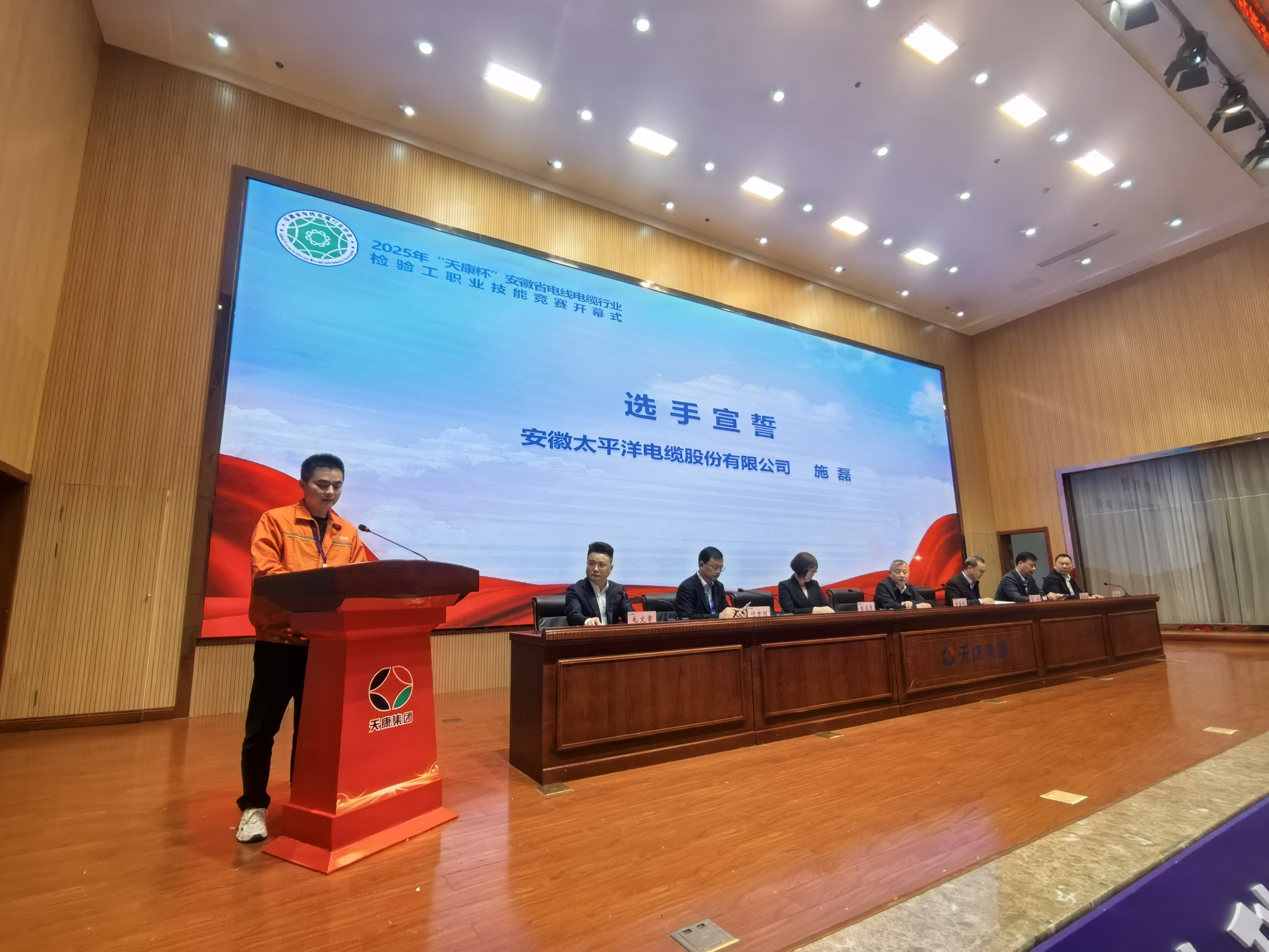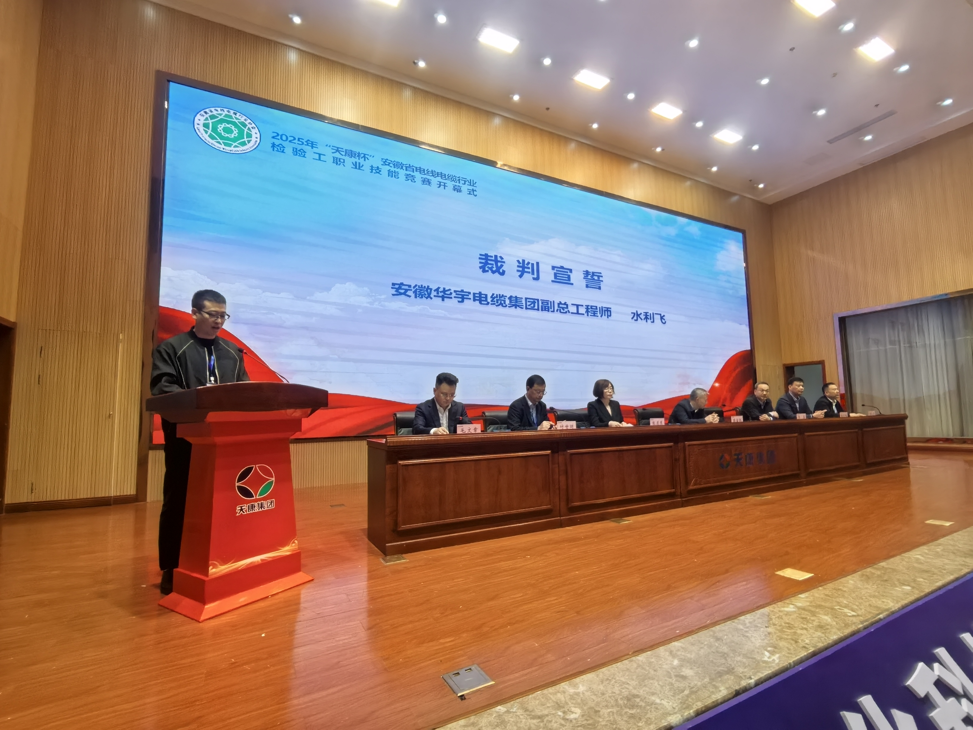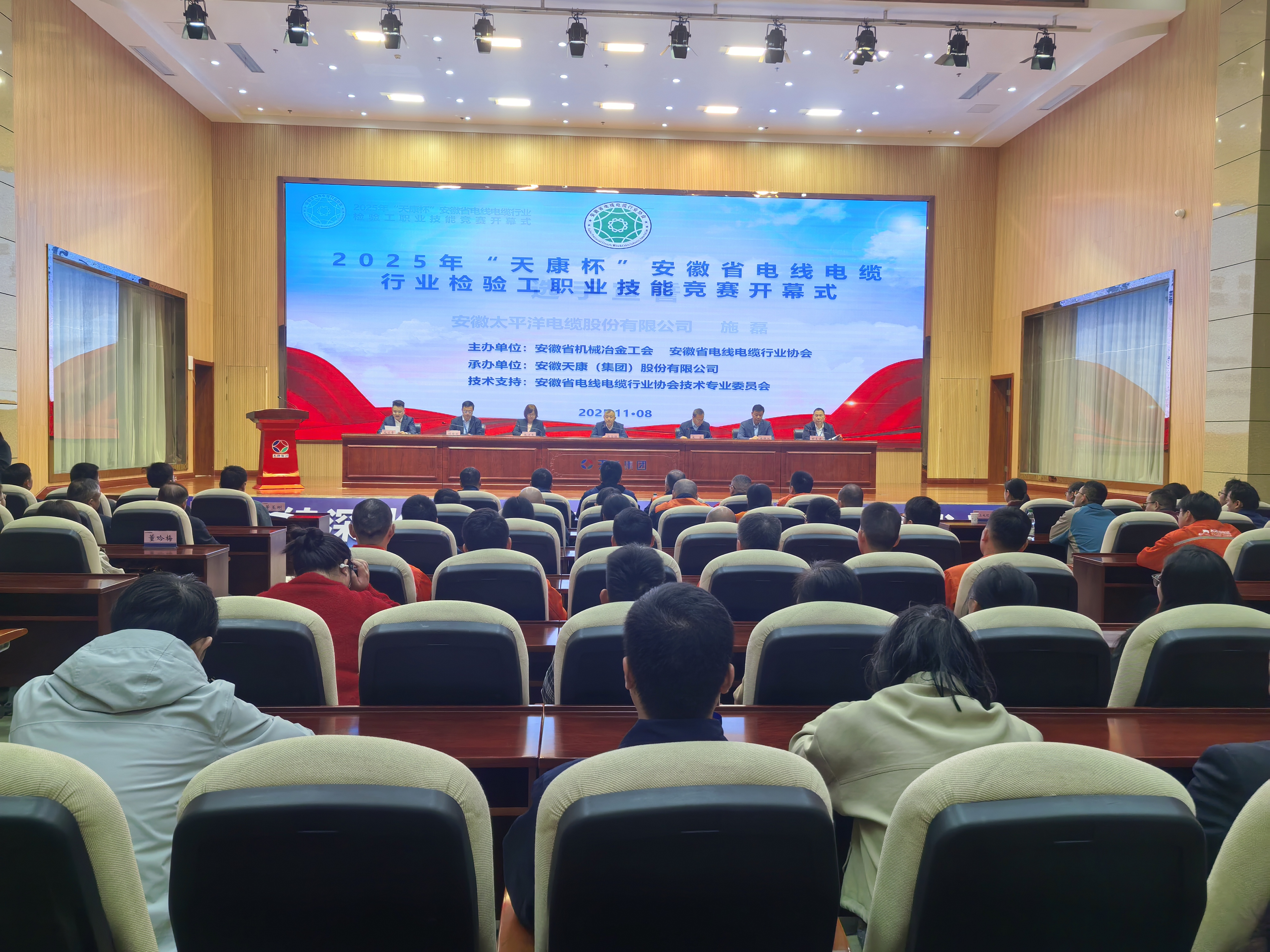 11月8日,由安徽省机械冶金工会、安徽省电线电缆行业协会联合主办的2025年安徽省电线电缆行业检验工职业技能竞赛决赛在位于天长市的安徽天康(集团)股份有限公司开幕。安徽省总工会党组成员、副主席陈金红出席讲话并宣布开幕。安徽省机械冶金工会主席张愧,滁州市总工会党组书记、副主席张道秀,滁州市总工会组织部部长曹胜军,天长市总工会党组书记陈梓旭,安徽省电线电缆行业协会专家付世财,安徽省电线电缆行业协会秘书长胡良健等出席开幕式。安徽省电线电缆行业协会执行会长、安徽天康(集团)股份有限公司总经理毛文章主持开幕式。