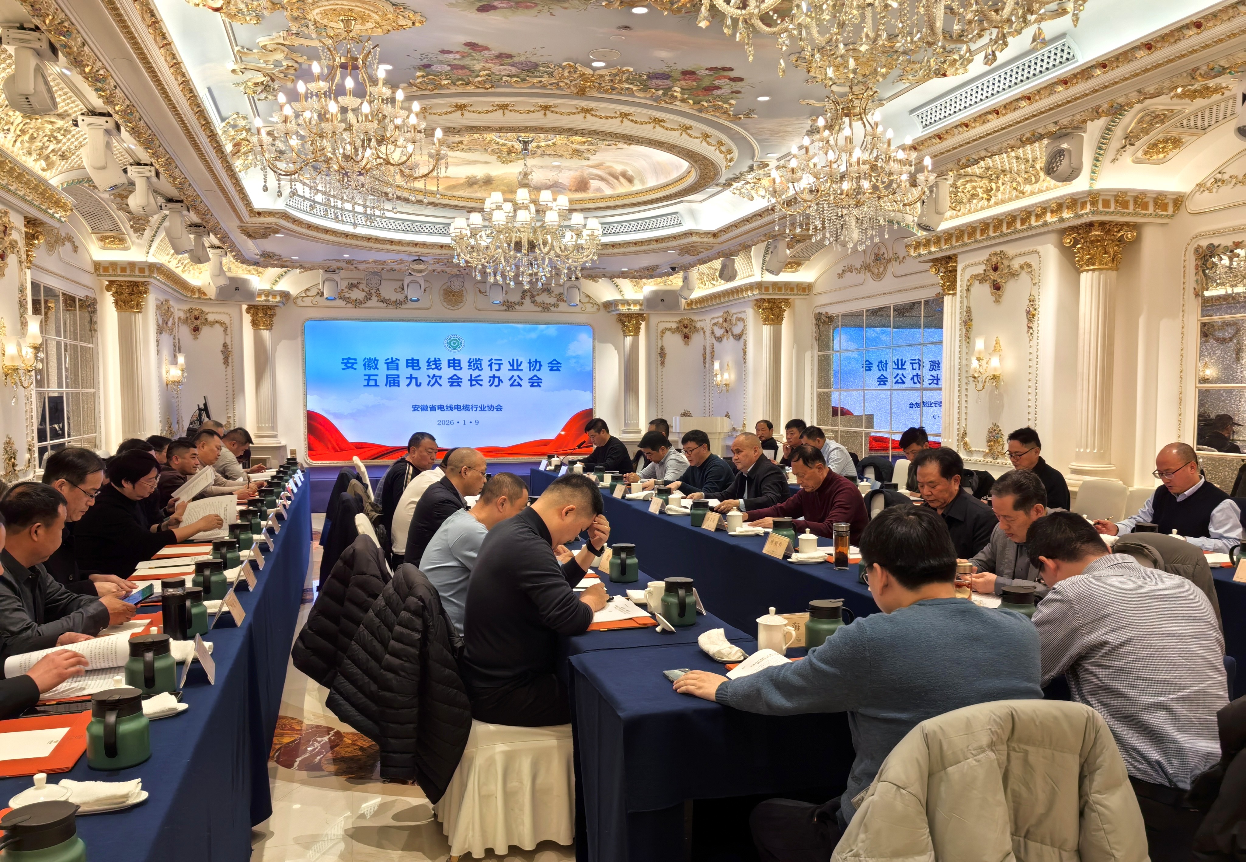2026年1月9日上午,我会五届九次会长办公会在合肥白金汉爵大酒店召开,旨在立足新发展阶段,统筹推进协会重点工作、凝聚行业发展共识。会长徐顶峰,监事会主席沈文植,党支部书记兼常务副会长王义银,协会执行会长、常务副会长、副会长,以及秘书处相关同志参加会议。会议由常务副会长单位——池州起帆电缆有限公司总经理鲍大章主持。