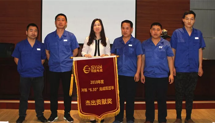 “模具安装好以后,注意运转速度,一点一点调整,不要急……”2018年7月2日,在安徽明星电缆有限公司车间90号挤塑机前,刚刚荣获公司“冲刺双过半•杰出贡献奖”的毕功庆正在给新来的员工讲解挤塑设备操作要领。