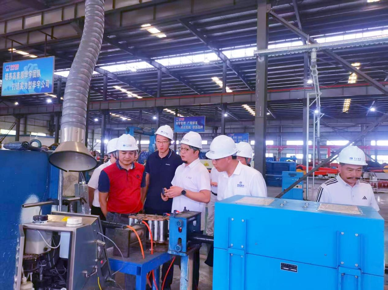 9月25日上午,广东线缆行业交流团一行在秘书长林伟的带领下,莅临安徽华宇电缆集团进行参观考察。公司董事长叶明竹亲切接待,行政副总张传明、生产副总刘炜、总工程师李欣、副总工师水利飞等高管陪同考察。