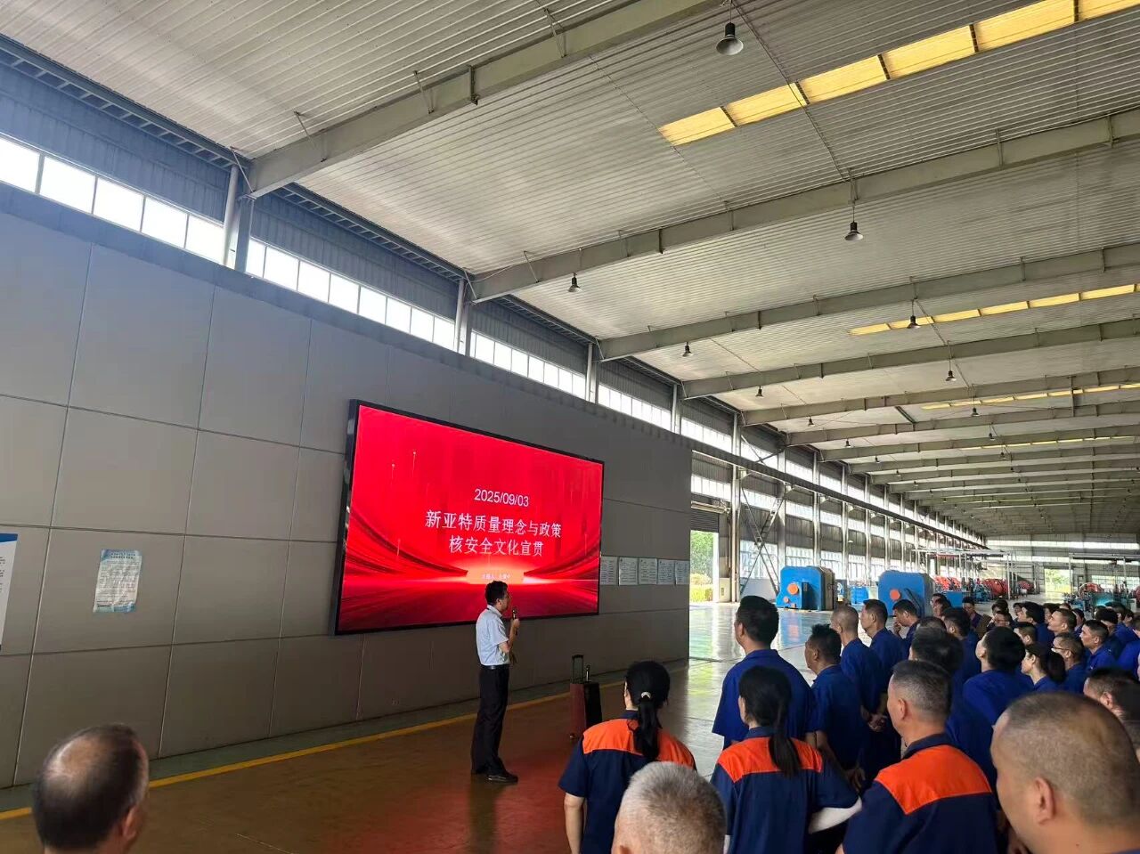 9月3日,质量月启动会在公司四车间隆重召开,生产中心、技术中心等部门两百余名骨干齐聚现场,共同拉开质量提升行动的序幕。生产总监赵逸新主持会议,常务副总朱强中发表动员讲话,深入宣贯公司质量理念与管理政策,重点解读核安全文化的核心内涵,强调 “电缆质量关乎安全底线”。会上,明确了“以赛促学、以训强能”的活动思路,公布系列技能竞赛与培训计划,为质量月活动筑牢实施框架。