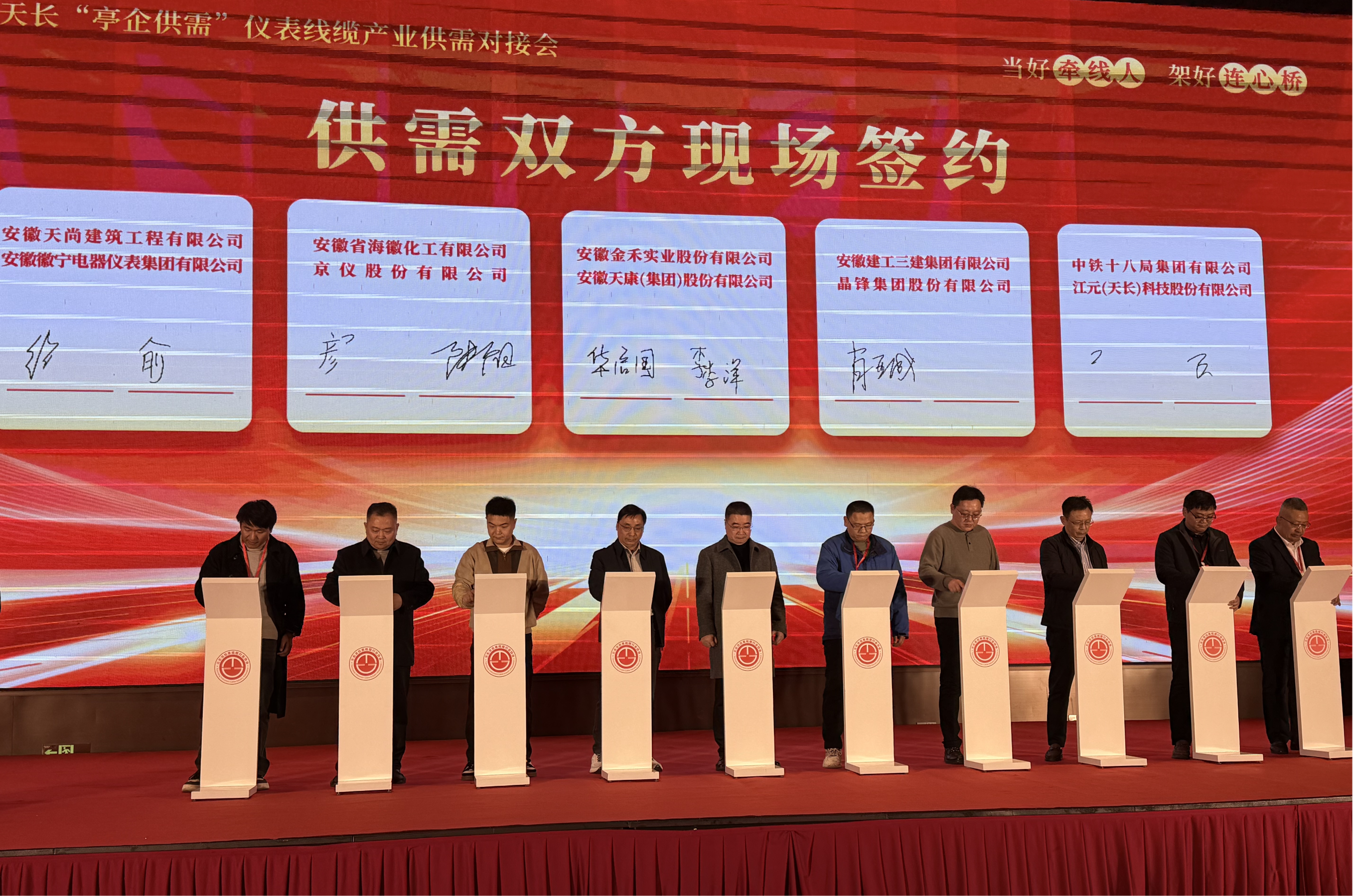 在供需对接签约环节,安徽徽宁集团常务副总经理徐祖彬代表公司上台签约,标志着徽宁集团在仪表线缆产业协同发展中迈出了实质性步伐。此次签约不仅是供需双方的深度合作,更是徽宁集团融入区域产业发展大局、实现资源互补共赢的重要契机,将进一步推动集团拓展市场渠道、提升品牌影响力。
