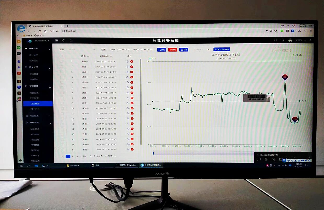 1.本项目创新采用智能预警电缆系统技术,实时采集电缆内部温度、周边振动及应力变化等关键动态参数,通过算法加持的智能分析系统,当监测数据达到预设的预警或报警阈值时,系统将实时向运维人员推送告警信息,实现对电缆外力破坏的早期预警及故障精确定位功能;