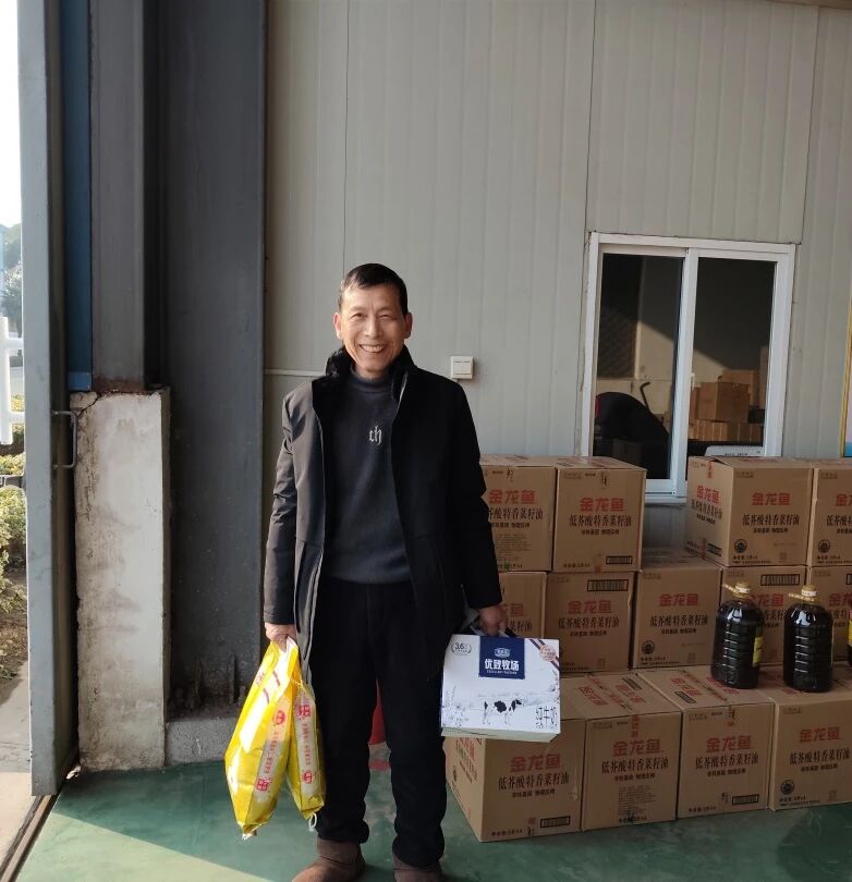 发放现场喜气洋洋、秩序井然。一份份承载着关怀的年货礼包整齐摆放,传递着浓浓的年味与温情。员工们脸上洋溢着喜悦的笑容,处处洋溢着家一般的温馨氛围。