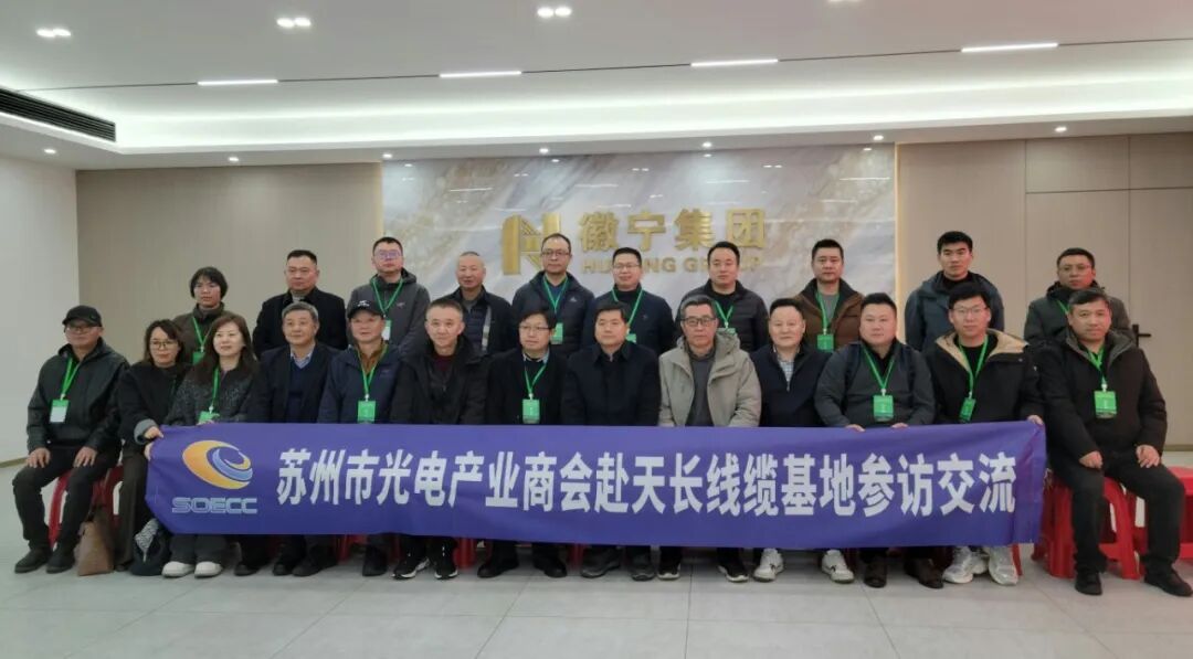 春和景明,聚力前行。2026年3月5日14时,苏州市光电产业商会牵头组织长三角电子线缆产业联盟及多家骨干企业代表,赴天长线缆产业基地开展参访交流活动,首站走进安徽徽宁电器仪表集团有限公司(以下简称“徽宁集团”),开展实地考察与座谈研讨。天长市仪表线缆行业协会组织相关负责人全程接待,党建指导员刘标、徽宁集团董事长王蕴华(协会监事长)、晶锋集团股份有限公司董事长许义彬(协会副会长兼秘书长)等协会代表陪同,徽宁集团常务副总经理等企业领导热情接待,双方围绕线缆产业高质量发展、技术创新、产业链协同等核心议题深入交流,共寻合作契机,共绘发展蓝图。