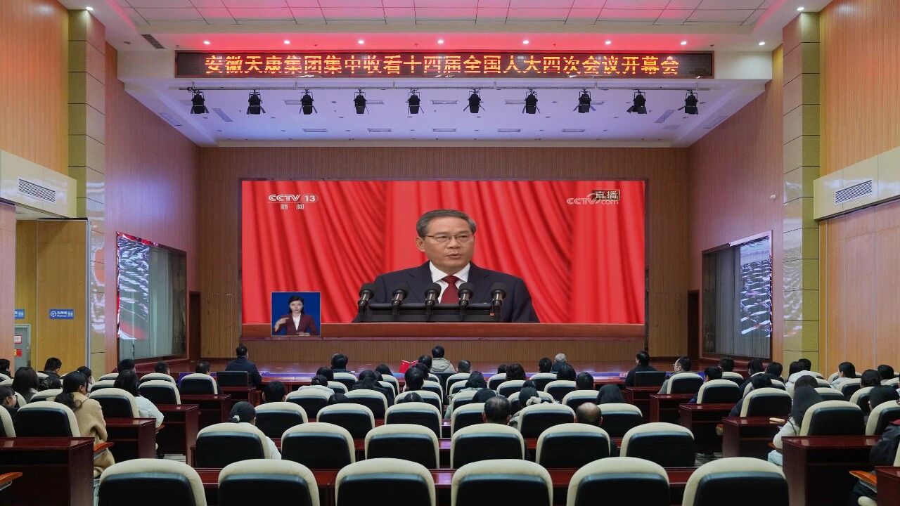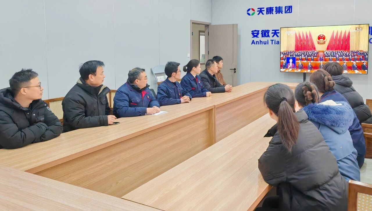 3月5日上午9时,十四届全国人大四次会议在北京人民大会堂隆重开幕。安徽天康集团党委积极组织党员干部和职工代表集中收看开幕会盛况,第一时间学习领会李强总理所作的《政府工作报告》。在家的集团党委书记、董事长赵宽,党委副书记、副总经理赵建兵,集团副总经理张祖国、赵可华,集团党委委员、工会主席于正江等领导与广大干部职工一同收看学习。