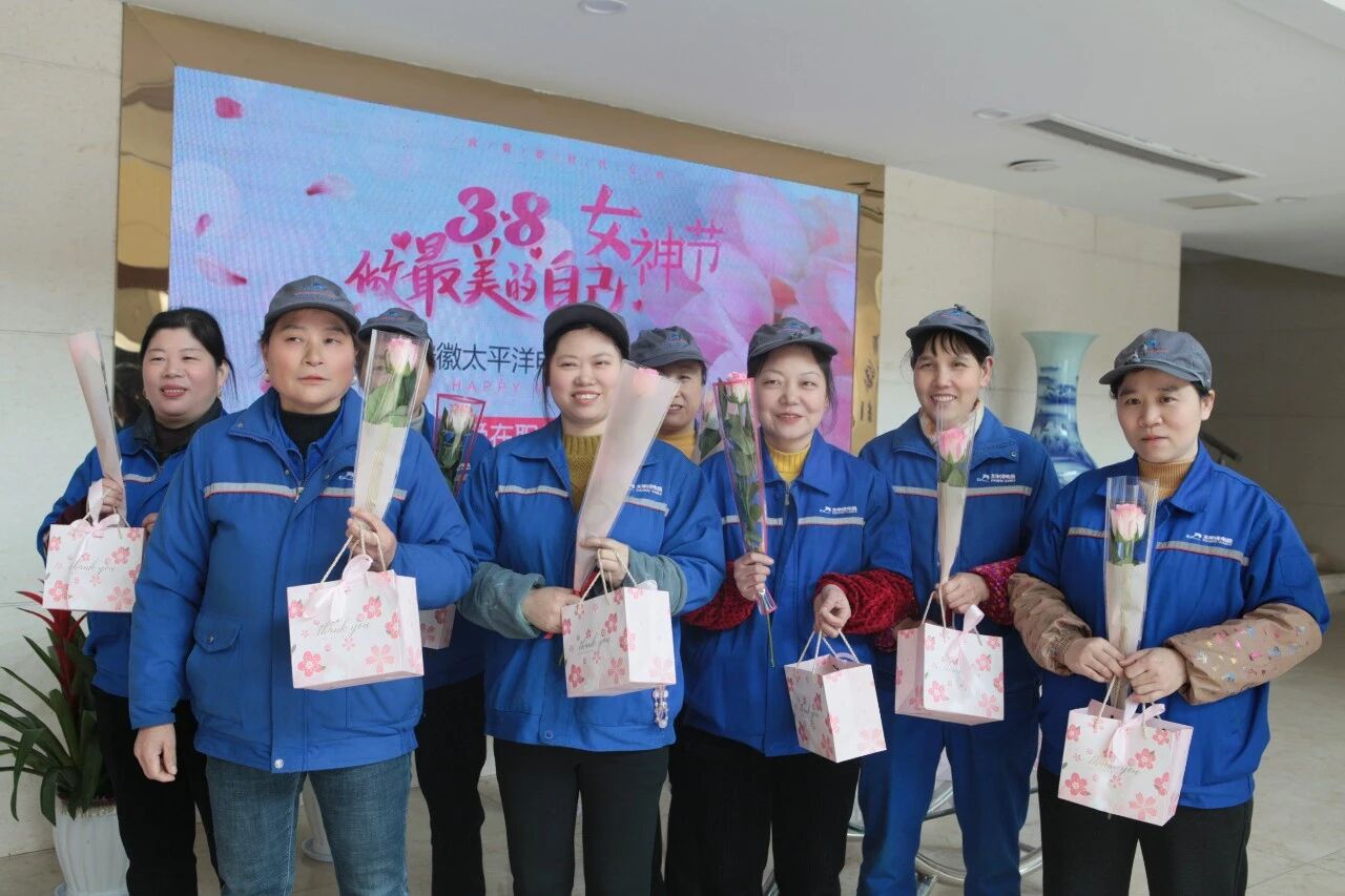 春风有信,花开有期,安徽太平洋电缆女神节关爱活动温馨启动,公司为女性员工们送上了美丽的鲜花和精美的礼品,让女员工们在温馨欢乐的氛围中度过难忘的节日。