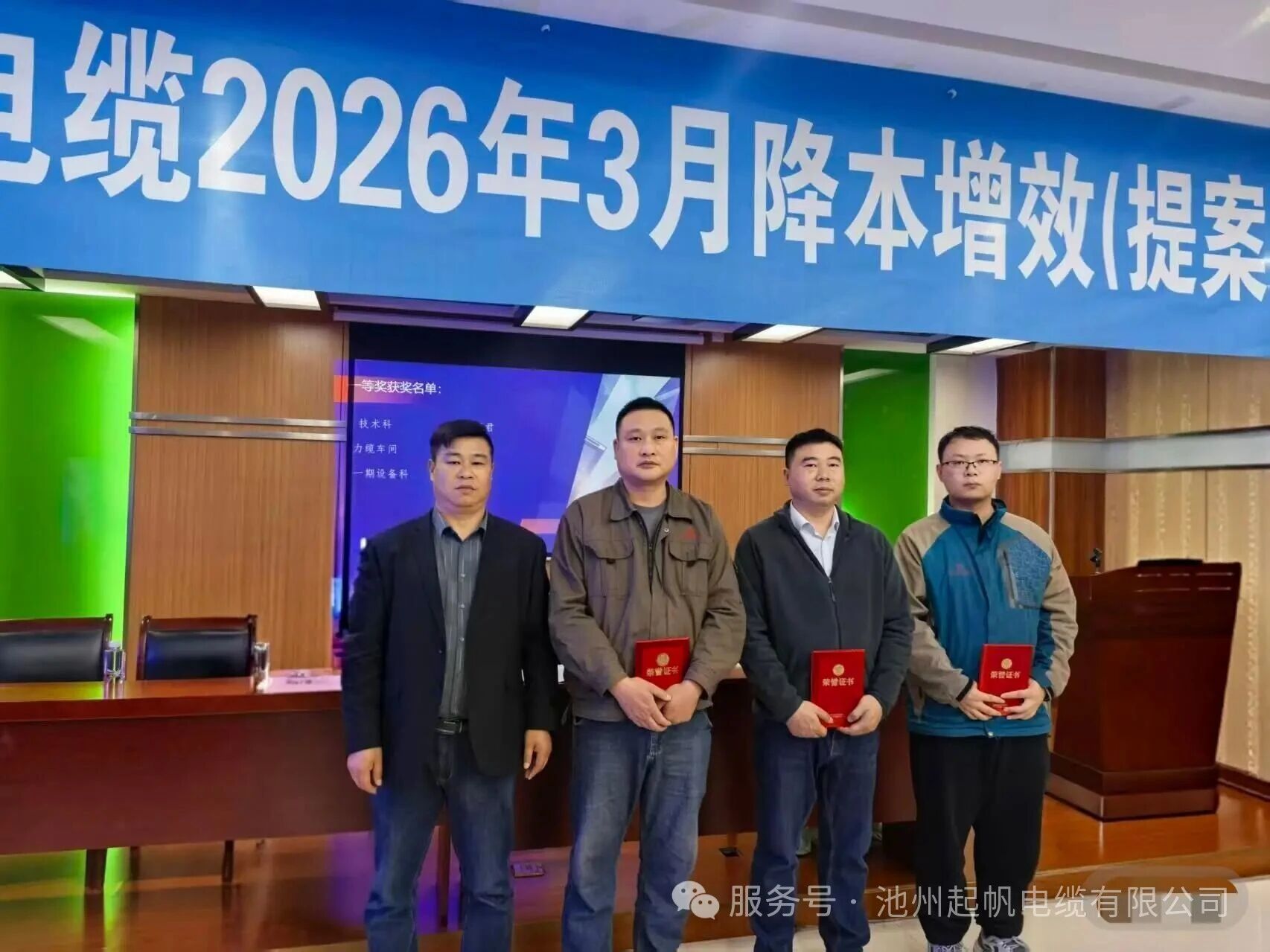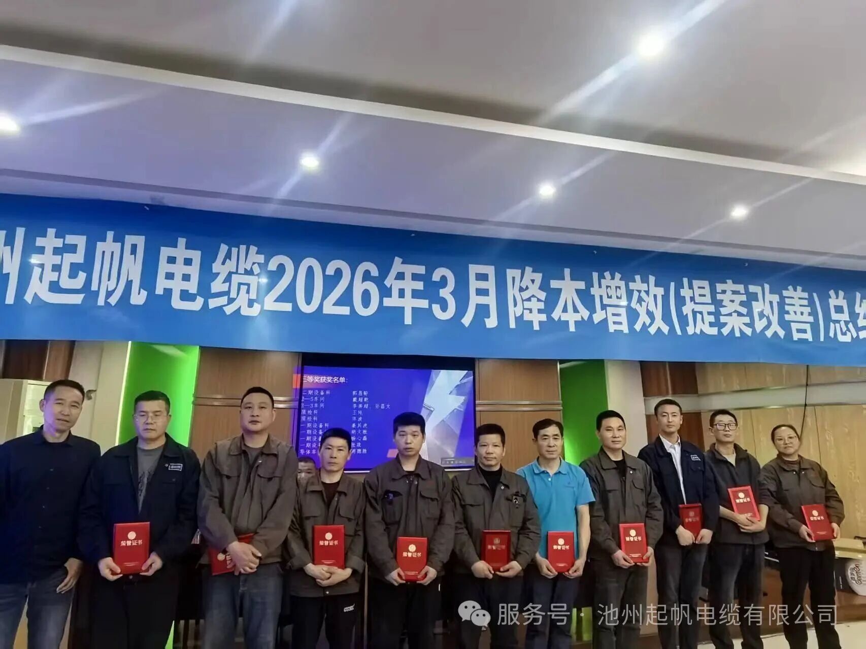 4月9日,池州起帆电缆召开3月份降本增效暨提案改善工作总结会,各部门负责人及获奖代表参加会议。