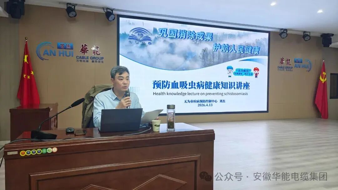 培训首先由无为市疾病预防控制中心刘杰股长主讲血吸虫病防护知识,结合区域防控重点,详细讲解血吸虫病传播途径、易感环境、早期症状及日常防护要点,提醒员工在生产作业、户外涉水等场景中做好防护、远离疫水,切实提升全员传染病防范意识。
