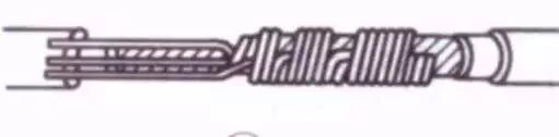 把余下的3根芯线按步骤⑤ 方法缠绕至第2圈时,把前4根芯线在根部分别切断,并钳平;接着把3根芯线缠足3圈,然后剪去余端,钳平切口不留毛刺。