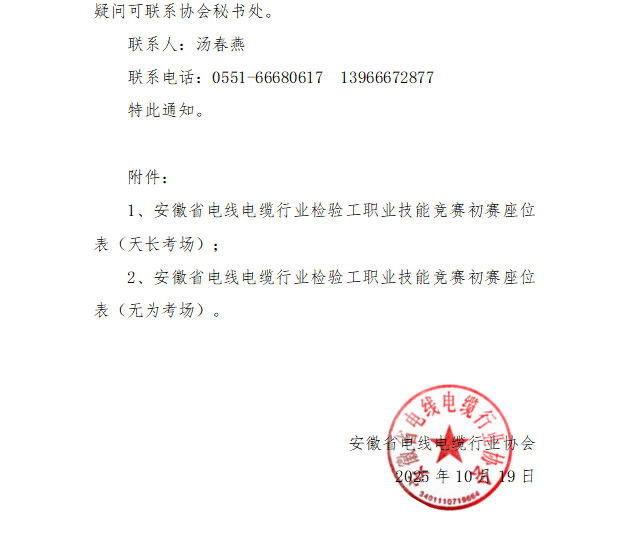 【通知】关于举办2025年“天康”杯安徽省电线电缆行业检验工职业技能竞赛初赛的通知
